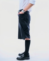2枚のパンツをドッキングし、ボリューム感のあるショートパンツとなっています。